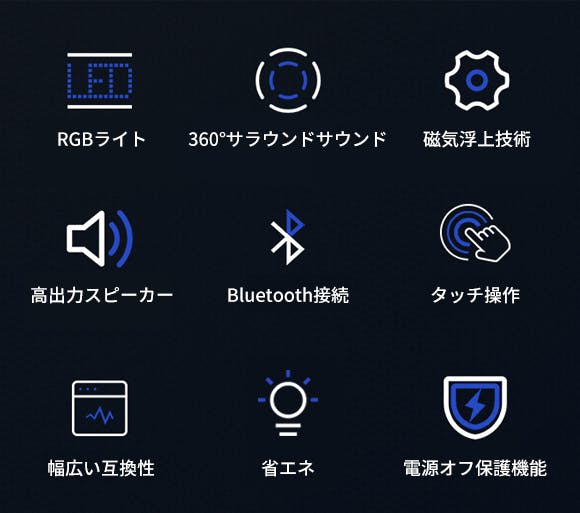 磁気浮上技術は、磁気力を用いて非接触で物体を支持する技術です。「Dier C1」は、磁気浮上技術を使用したBluetoothスピーカーです。ボールが宙に浮き、回転しながら内蔵LEDが発光して、お部屋に宇宙のビジョンを演出できます。