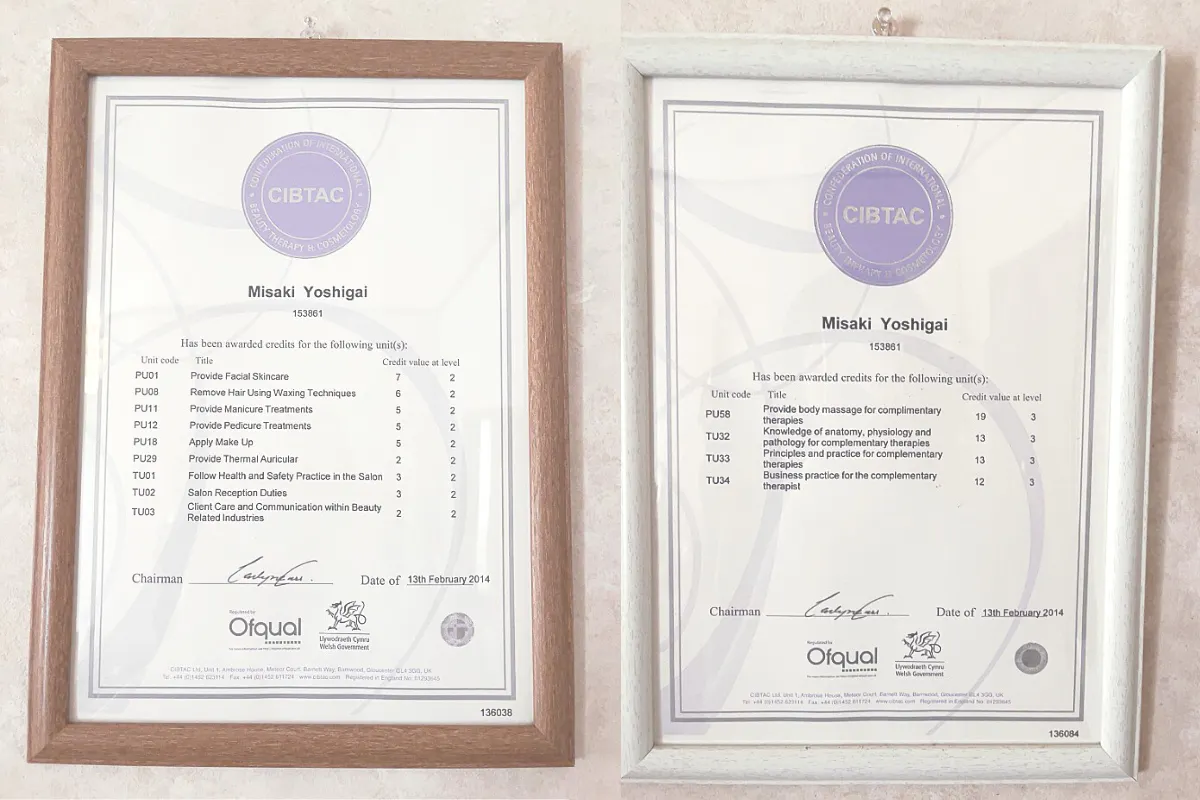 「1に人格2に技術、技術は回数」という校訓のもと、学生時代にはたくさんの事を夢中で学んできました。スパセラピストの国際ライセンスを取得し、その後、タラソテラピー施設で実践を積み、街中のサロンも経験してきました。