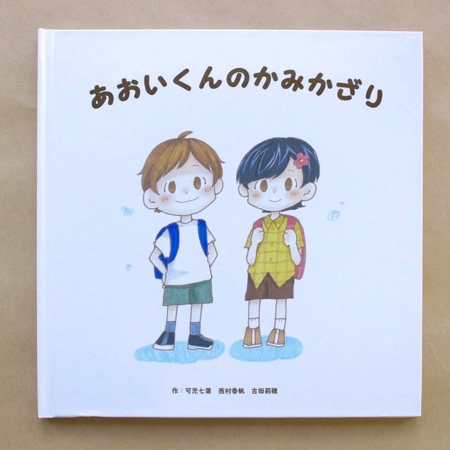 昨年、第一作として「あおいくんのかみかざり」という絵本を制作し、現在Amazonと丸善名古屋本店で販売しています。 この絵本を活用して、幼稚園での読み聞かせや施設への寄付なども行なってきました。
