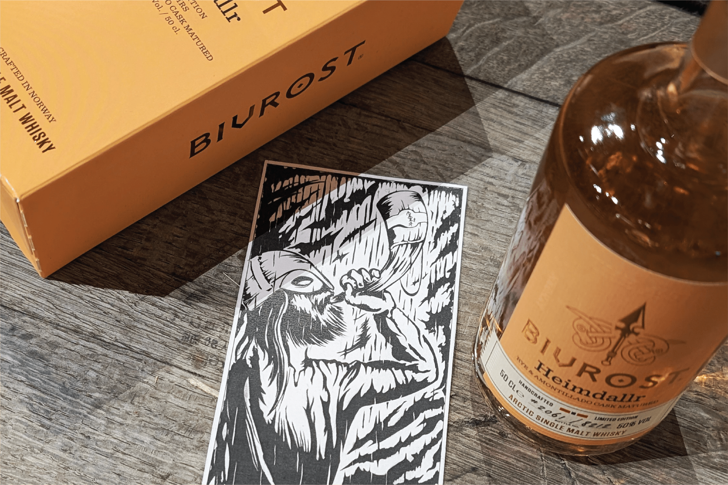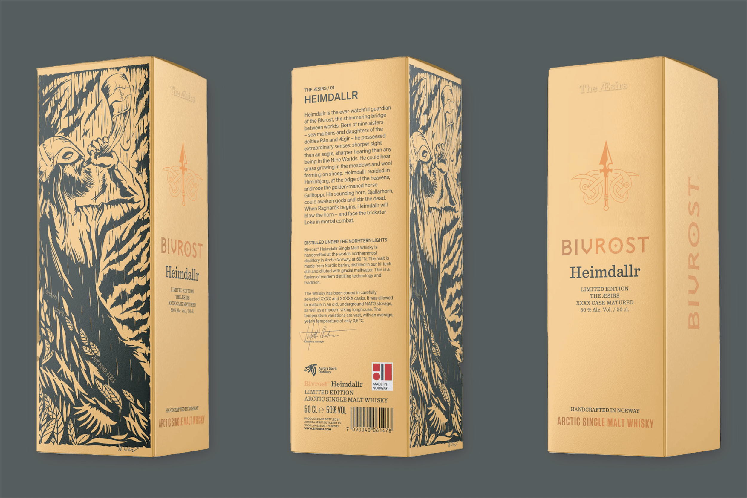 そんなヘイムダルをテーマに氷河の水とノルウェー産大麦でつくられたシングルモルトウイスキーはライウイスキー樽、アモンティリャード樽、バーボン樽、チーク樽という厳選されたユニークで考え抜かれた組み合わせの熟成樽を使用。
