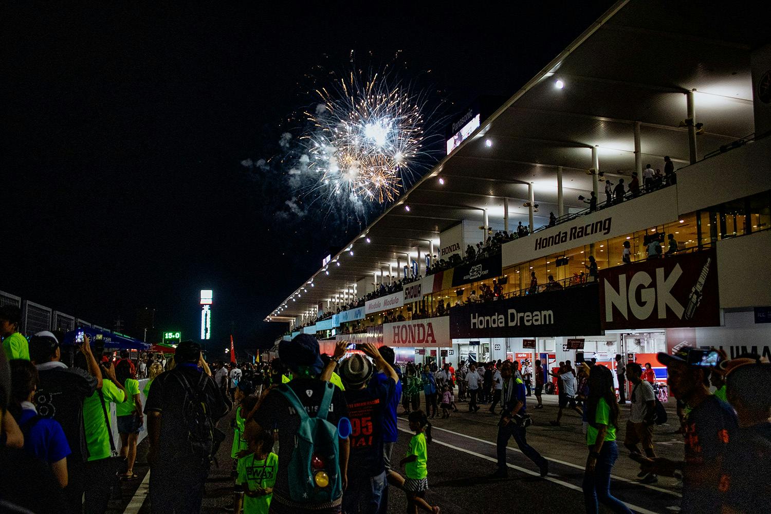 (鈴鹿8耐の終わりを告げる花火セレモニー)