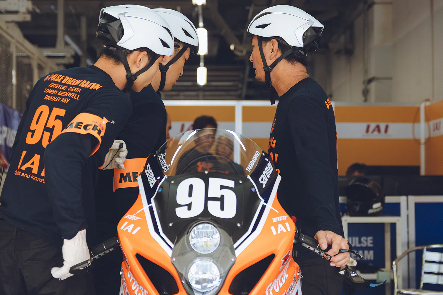 様々な気象条件やコース、タイヤや他パーツとの相性等、テストを重ねてマシンの熟成を進めるため、また、マシンの特性を活かしたライディングを探るために、生形とチームは全日本ロードレース選手権に8耐マシンと同じ1000ccの「JSB1000」クラスでスポット参戦しています。常にマシンもライディングも進化させ、8耐で上位陣と戦って、「表彰台に乗る」。そのための選択です。