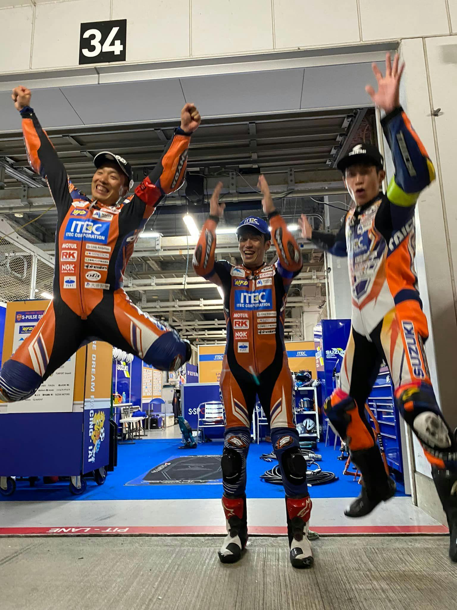 決勝レースが行われた日曜日、ブラッドリーのスタートが決まった時、生形は病院のベッドの上で歓喜しました。エスパルスドリームレーシングのオレンジのマシンに、世界中が驚くと同時に注目した瞬間でした。肺にたまった血液を抜くチューブが装着されたまま、ほどなく彼は鈴鹿サーキットのチームピットに現れました。皆の士気は一気に高まり、チェッカーフラッグが振られるその瞬間まで、チーム一丸となって戦い抜きました。
