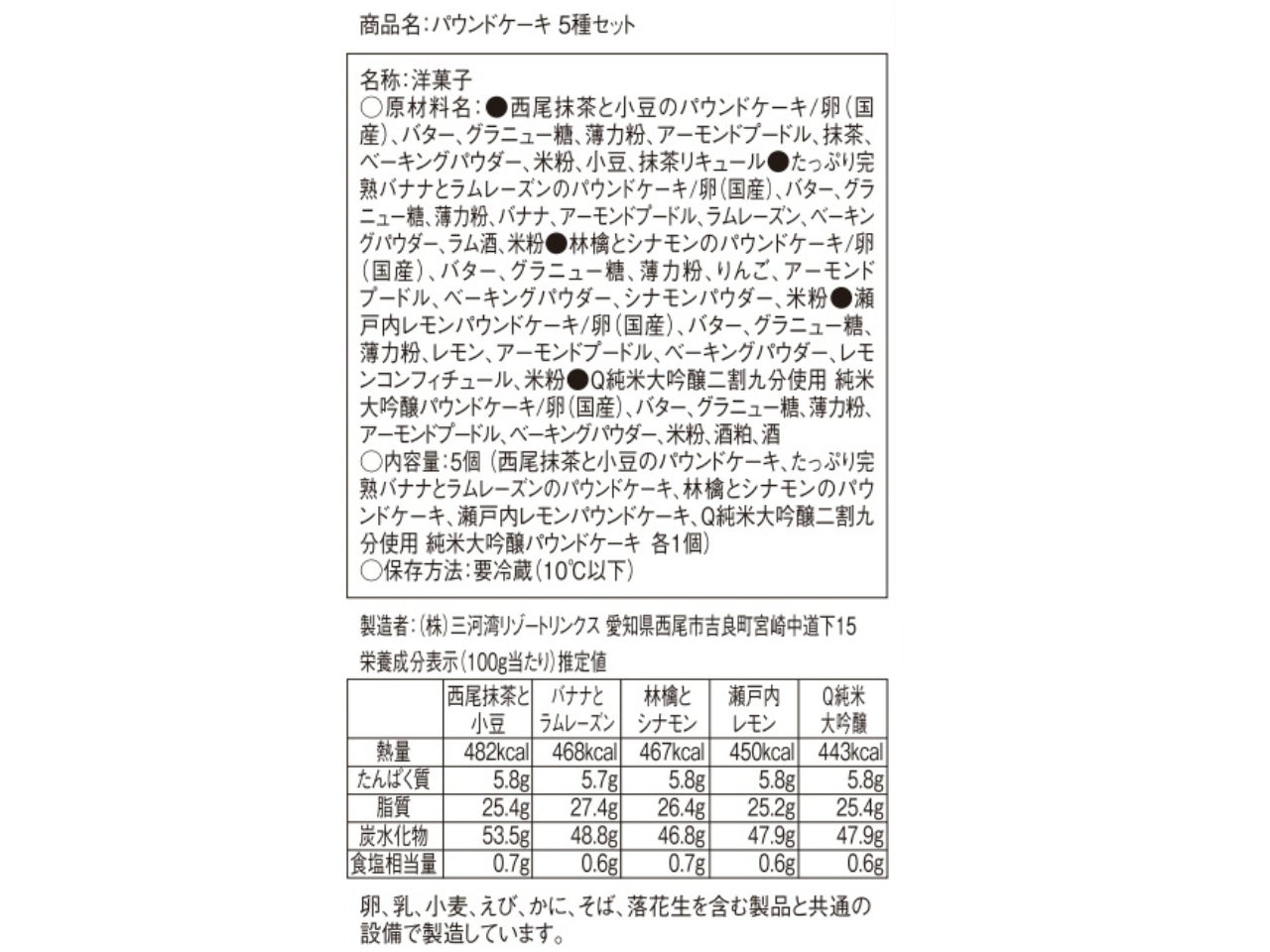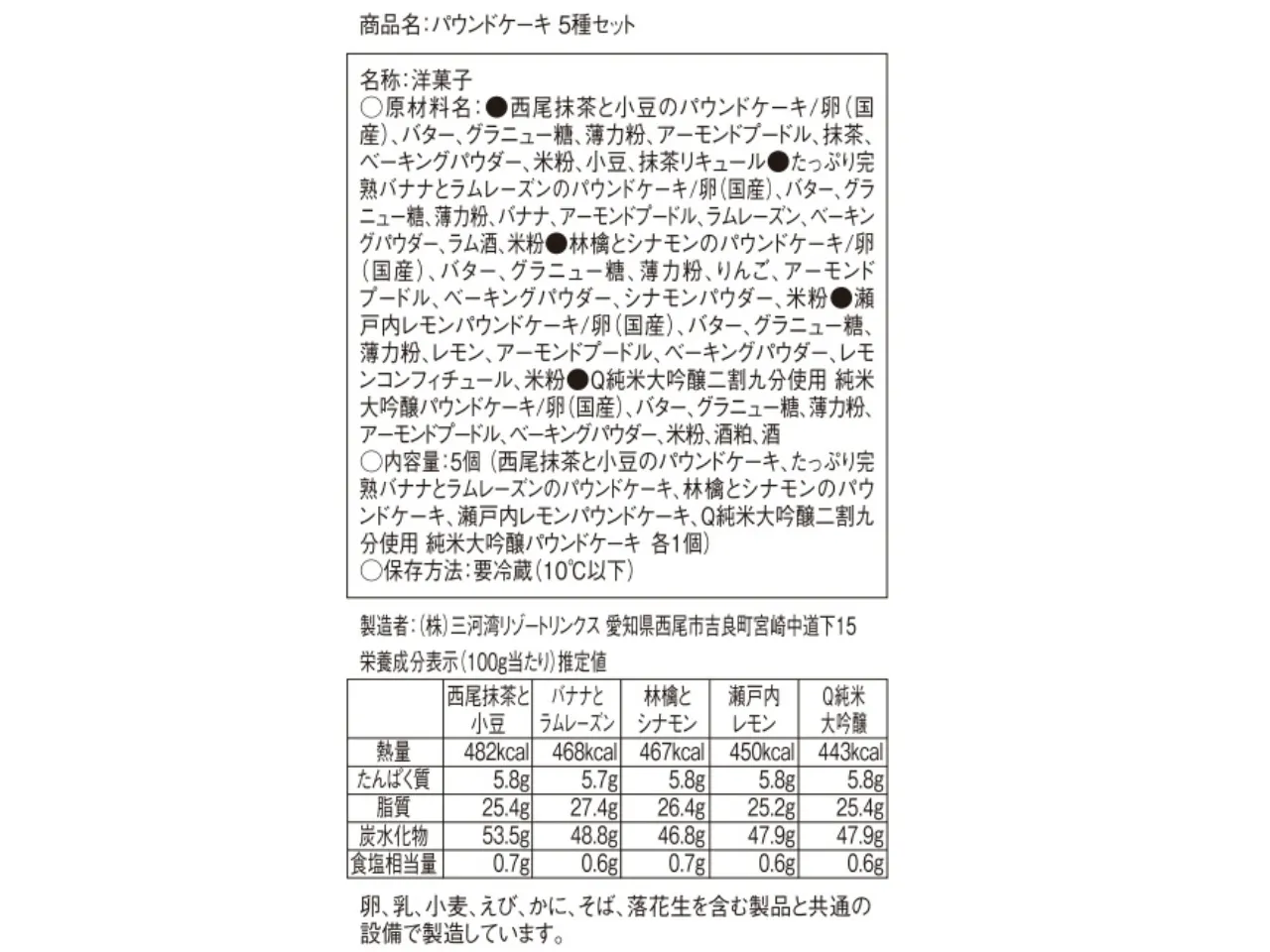 「純米大吟醸」「瀬戸内檸檬」「西尾の抹茶と小豆」「林檎とシナモン」「完熟バナナとラムレーズン」の5種詰め合わせセットをお届けします。