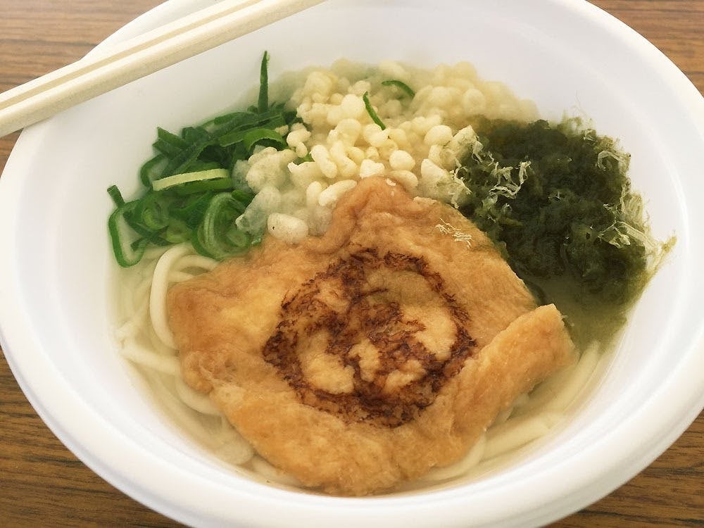 東淀川区に名物をつくる!と意気込み「東淀川うどん」をつくって販売したことも。見にくいですが…揚げに東淀川のマークが入ってます(笑)