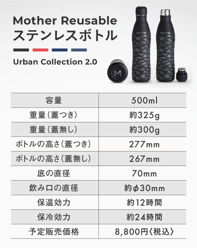 • Mother Reusables ボトルは、ご興味を持って頂いた皆さまの応援を頂きまして、東京ギフトショー2022秋では、輸入品人気コンテスト準大賞を受賞し一般販売をスタートさせました。本当に応援の賜物で、これらの結果のお陰でメーカーからの配送が日本に近い地域からとなり、コスト削減の末一般販売を開始させることができました。ひとえに皆様の応援のお陰でございます。この度無事にAmazon販売をスタートさせる運びとなりました!つきましては、販売スタートに合わせ10%OFFクーポンの配布を年末まで。ポイントセール、今ならAmazonのダブルポイントセールの対象でもあります。ご興味あられる方は、ぜひ今のお得な内にお求めください。よろしくお願いいたします。Amazon販売はこちらからMother Japan(運営ローズピヴォイン合同会社) もっと見る