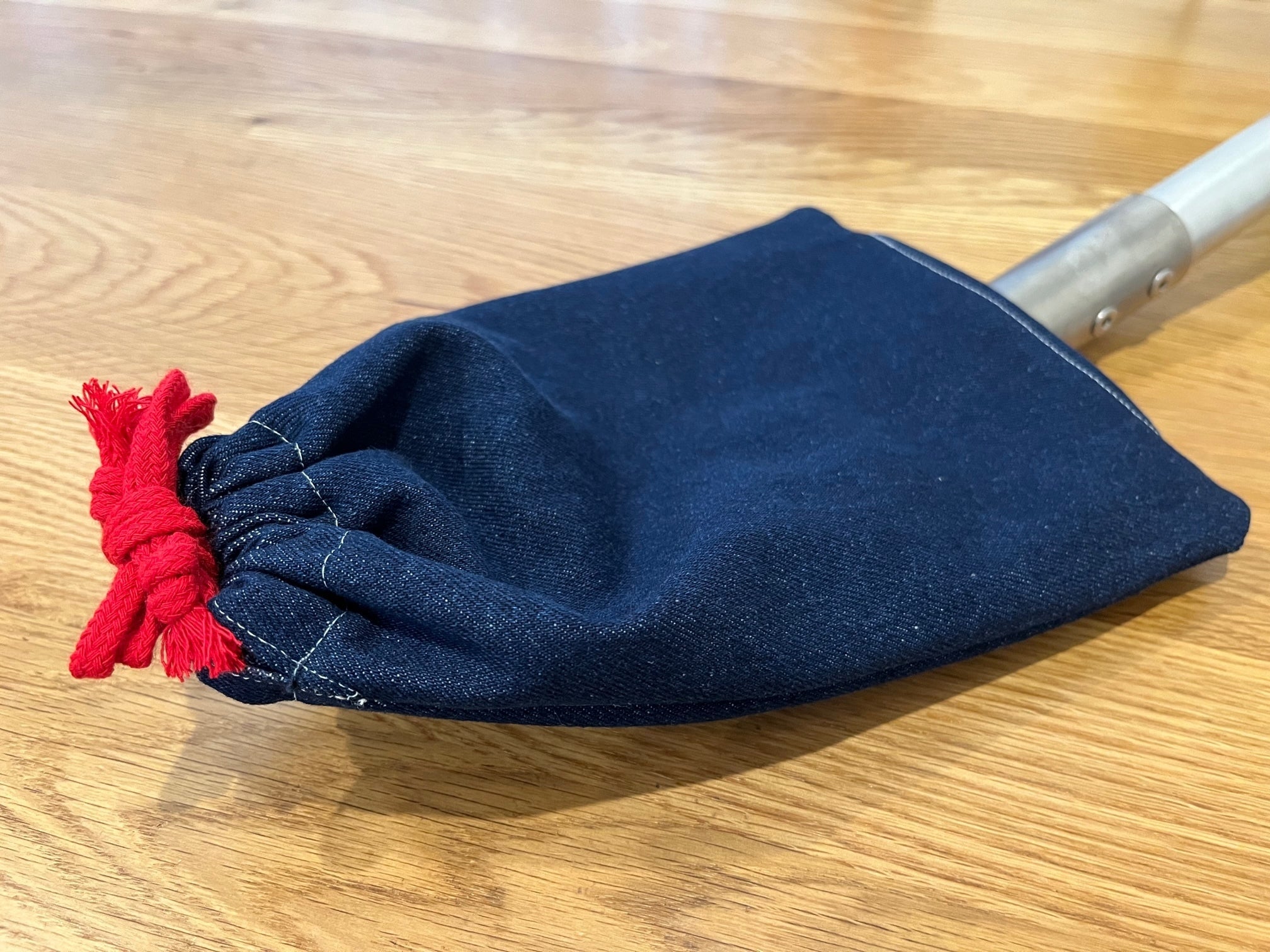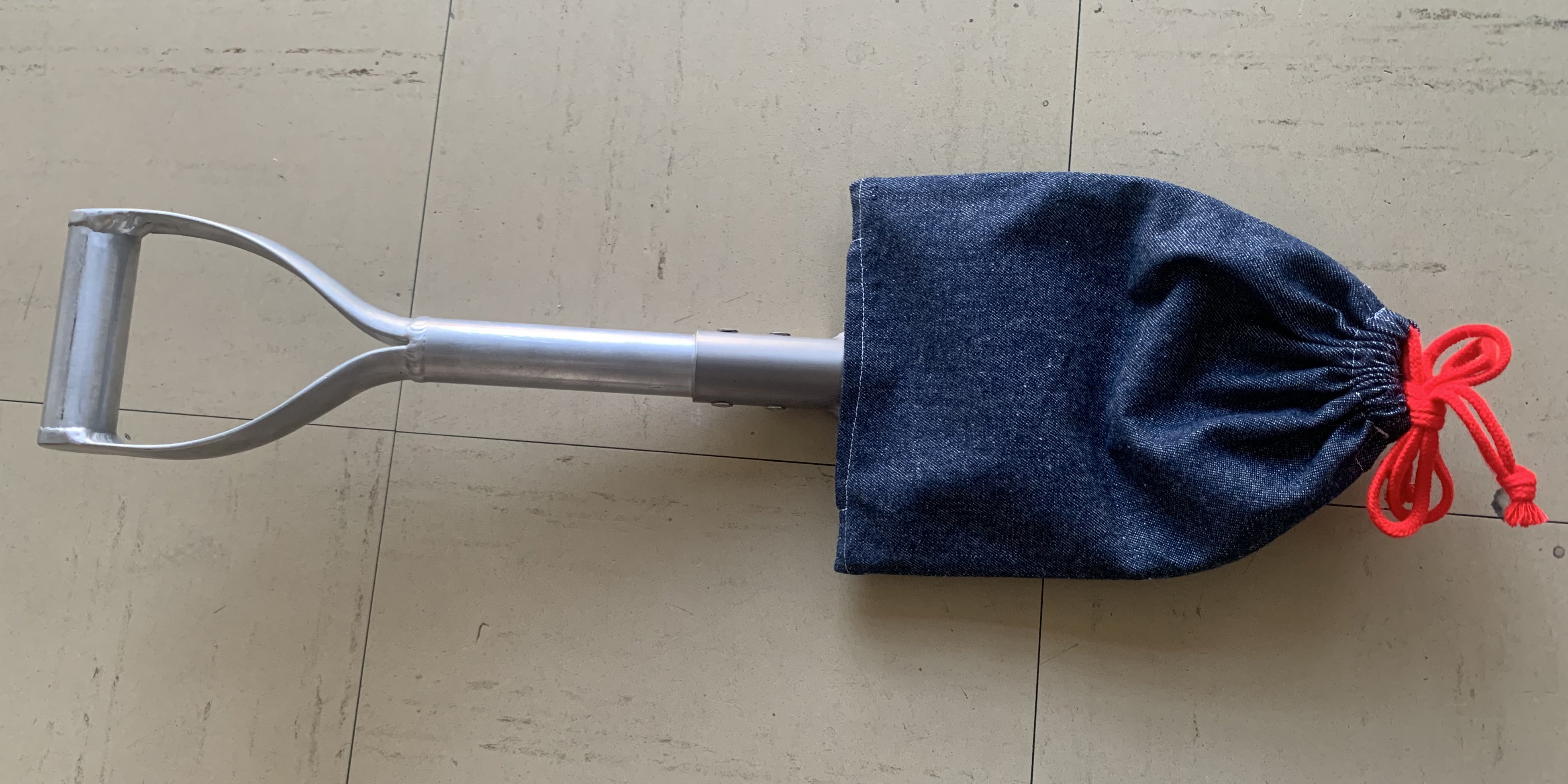 2022/08/28 15:02シャベル本体に先駆けて、付属品の収納ケース(巾着袋)ができて参りました。こちらは一見すると何の変哲もない巾着袋ですが・・・底には大きな穴が開いています。これに対して、シャベルの持ち手の方から底の穴に向けて柄を通していきます。柄を通し終わるとシャベル頭部の足をかける部分でぴったり止まります。あとは冒頭の写真の通り、紐を結ぶだけです。頭部の尖った箇所の位置がちょうど結び目になりますので、シャベル本体を保護するだけでなく、荷室や使用者に対しての保護も果たしてくれます。生地は丈夫なデニム製です!次回以降はシャベル本体の製作状況もご報告して参ります。 もっと見る