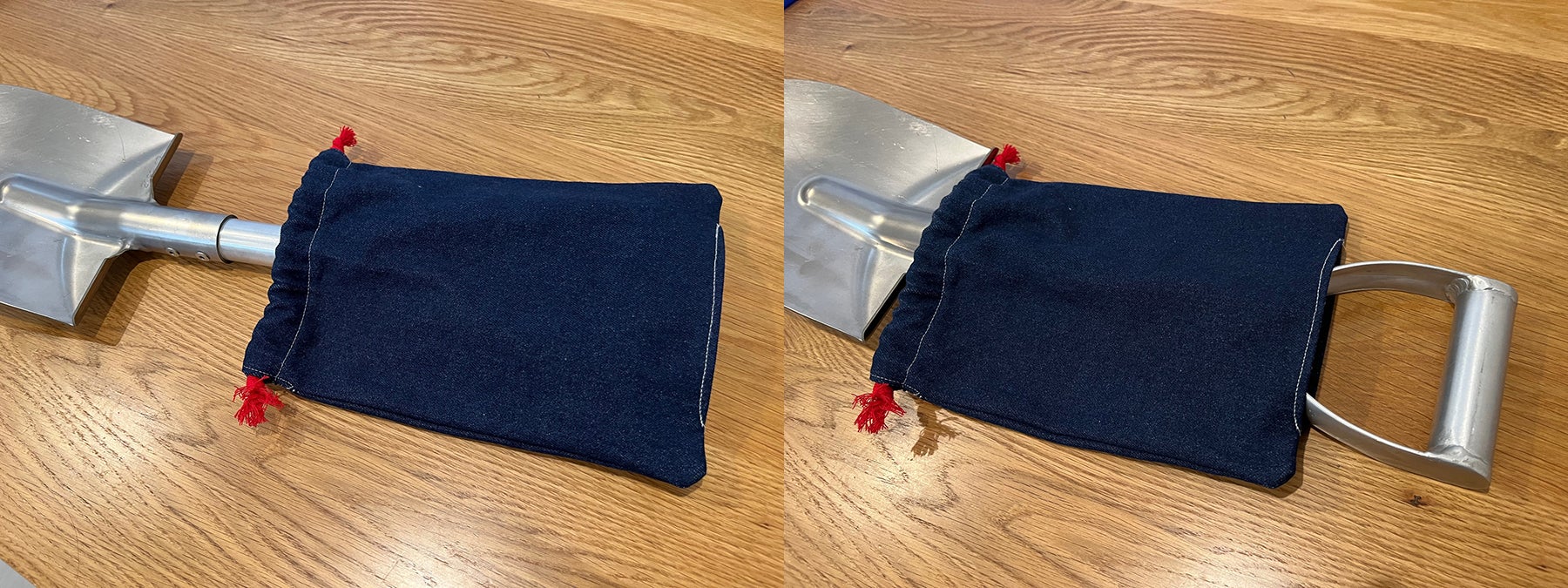 シャベル本体に先駆けて、付属品の収納ケース(巾着袋)ができて参りました。