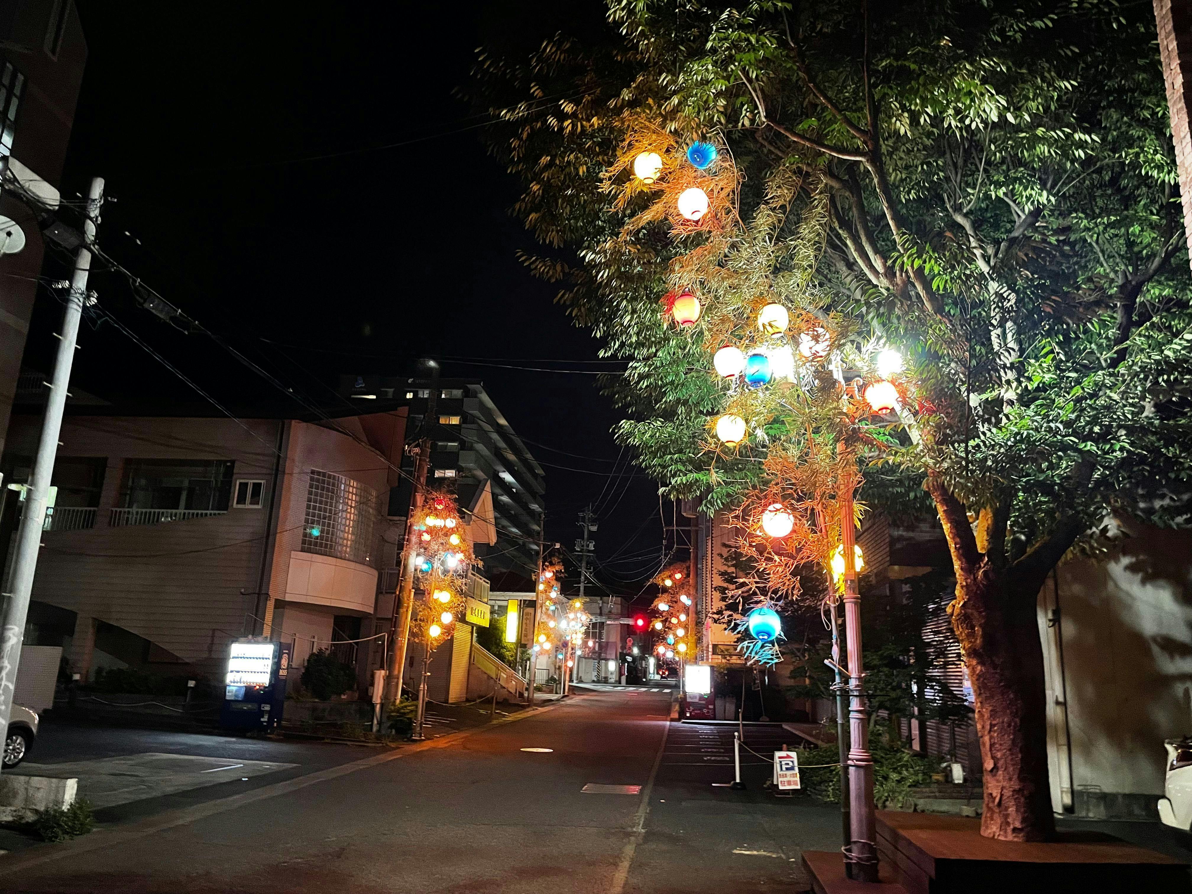 国分中央通りに3年ぶりに竹ちょうちんが灯りました!