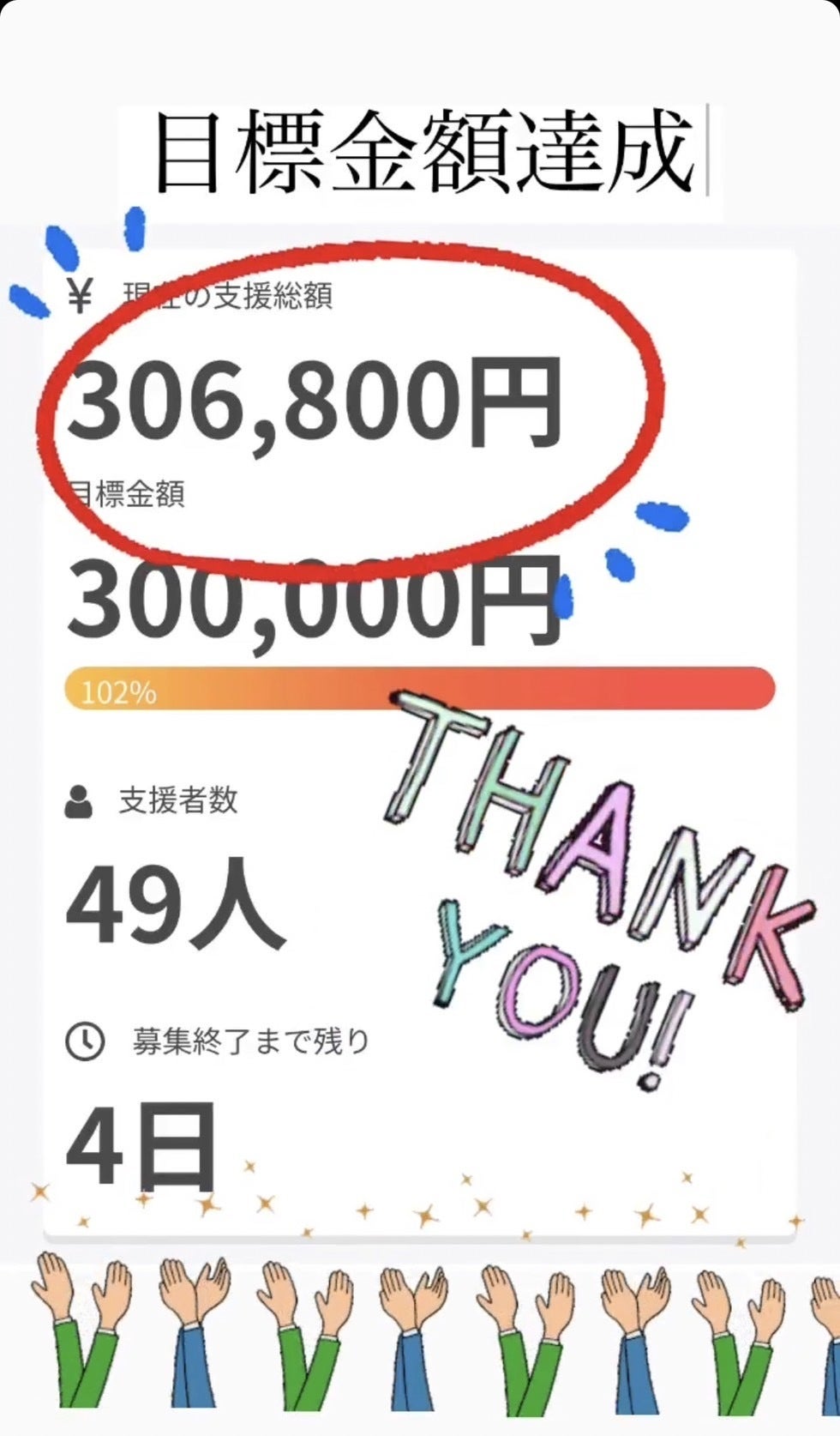 私たちのクラウドファンディングが4日を残しての目標達成となり、その喜びと感謝の気持ちでいっぱいです。