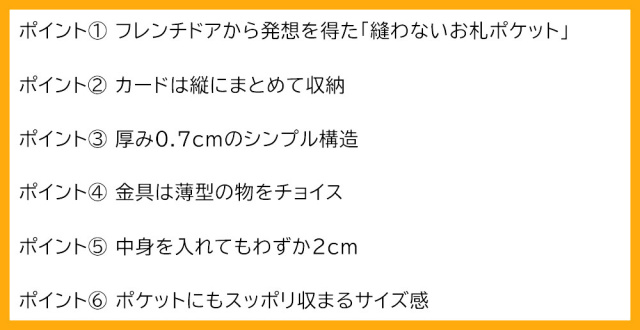 ポイント① フレンチドアから発想を得た「縫わないお札ポケット」