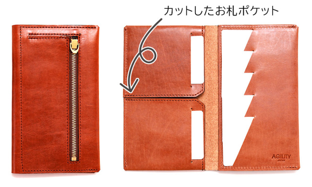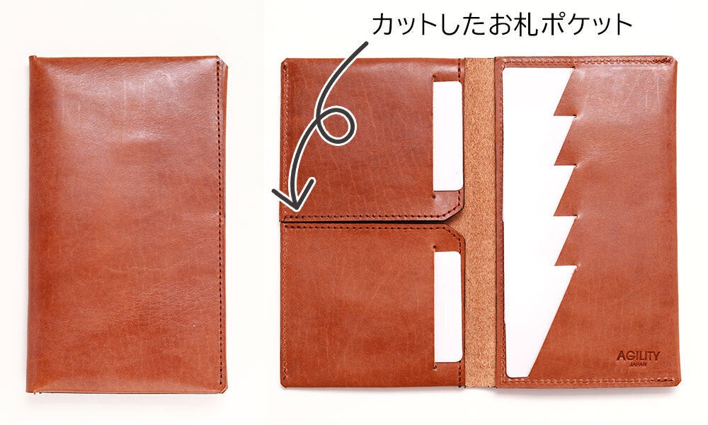 こちらのお財布の一番の特徴、大胆にカットした「お札ポケット」から命名しました。