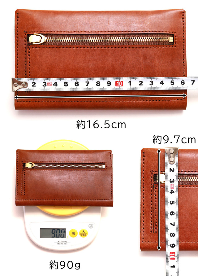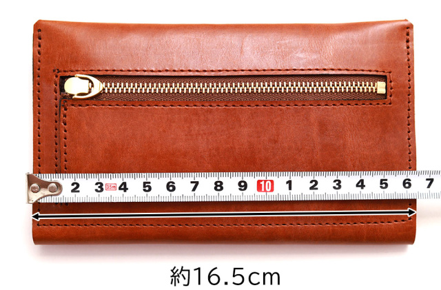 平均的な長財布に比べ約2cm程、横幅が短くなっています。