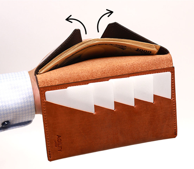 上のイメージ画像はAGILITYで発売中の、カードとお札だけが入る極薄札入れ「ランジェ」。