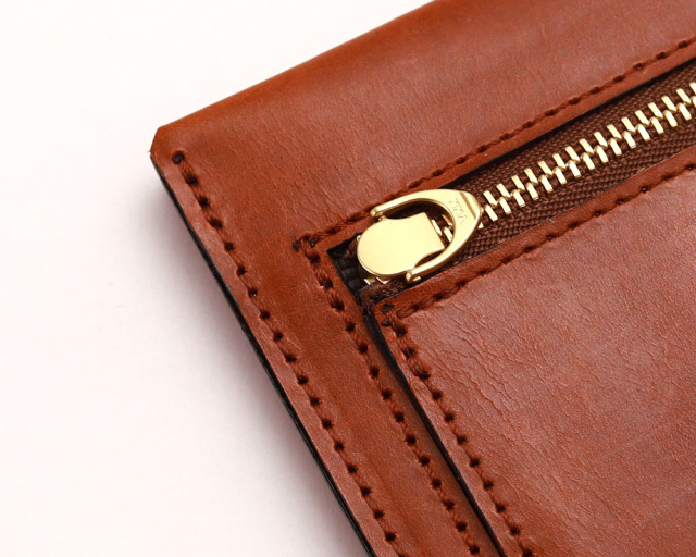 薄さを表現するために、外側のファスナーポケットのスライダーはYKKの高級ライン EXCELLA®(エクセラ)を採用。