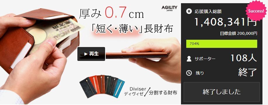 長財布派のユーザーから支持され、108名の方から応援購入を頂きました。