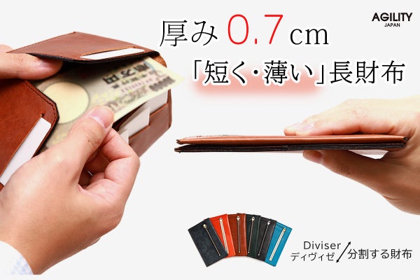 2022/06/27 14:16お世話になっております。AGILITYです。本日6/27より新プロジェクトを開始しました!!・札入れ財布をベースにした「短く・薄い」小銭の入る極薄長財布『ディヴィゼ』ディヴィゼはマクアケで先行受注を行い、108名の方から応援購入頂いたプロジェクトです。大きなポイントは以下の3つ・札入れ+aのサイズ感を目指した「短く・薄い 」コンパクト長財布・「小銭ポケット」つきの長財布でありながら、厚みが僅か0.7cm・フレンチドア(観音開き)から発想を得た「中割れポケット」で、お札の取り出しをスマートに札入れの使い勝手はそのままに、最低限の小銭も収納できる「小さく、シンプル」にまとめた長財布です。素材はロロマレザー、全6展開になります。応円購入お待ちしております! もっと見る