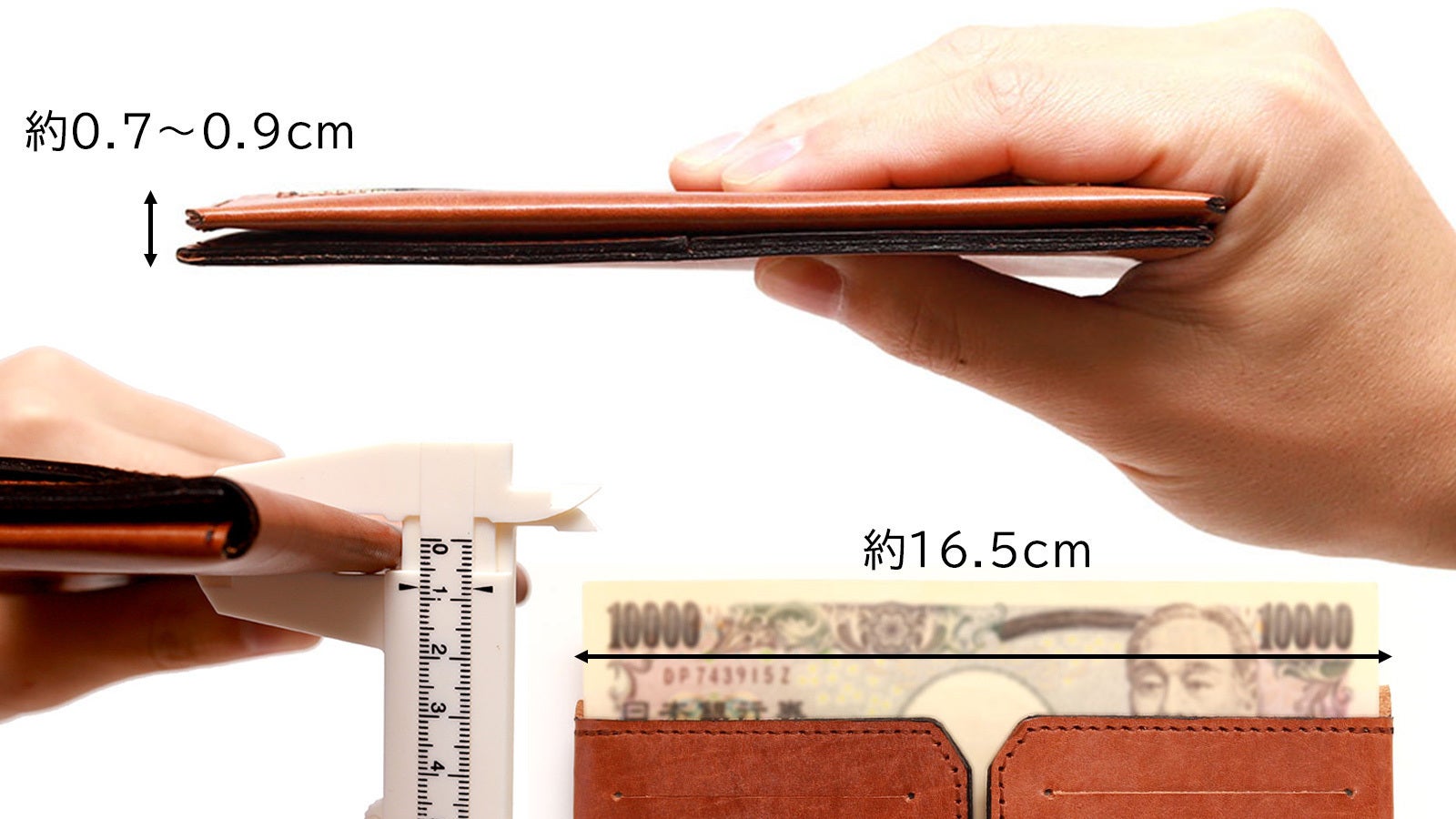 サイズが平均的になるのは、一万円札の縦横幅に縫製の幅が追加されるからです。