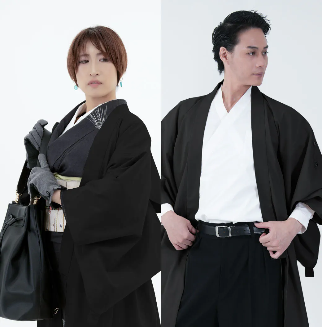 伝統的な着物の上に軽やかに羽織っても、フォーマルなスーツの上に羽織ってもどちらも楽しめます。