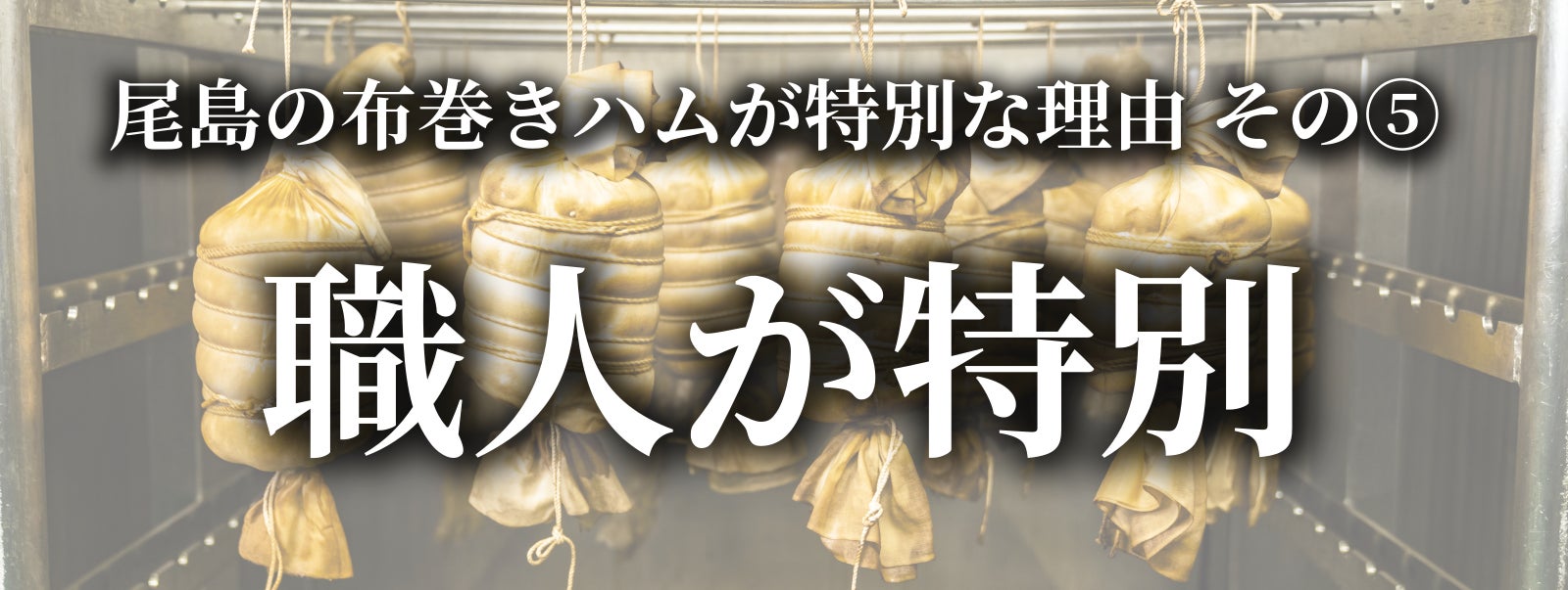 肉匠が長年の経験から得た肉の選別技術を駆使し、布巻きロースハムのために厳選した特別な豚肉のみを使用しておりますので肉の旨みには自信をもっております。