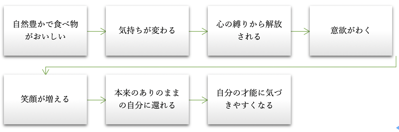 人の心に豊かさが戻れば、笑顔が増え、人の自然治癒力も高まり、心身ともに健康でいられます。また、知恵を働かせて工夫して楽しく生活することで、人が本来もっている能力が開花し、自己肯定感が増します。
