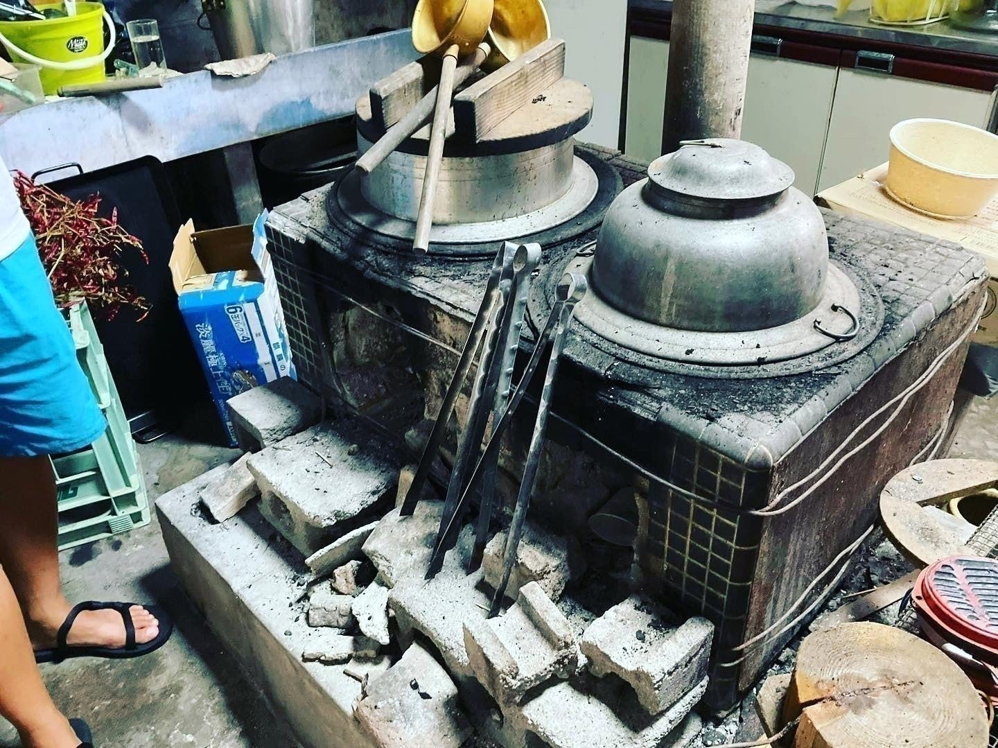 <おくどさんに人がいる様子>