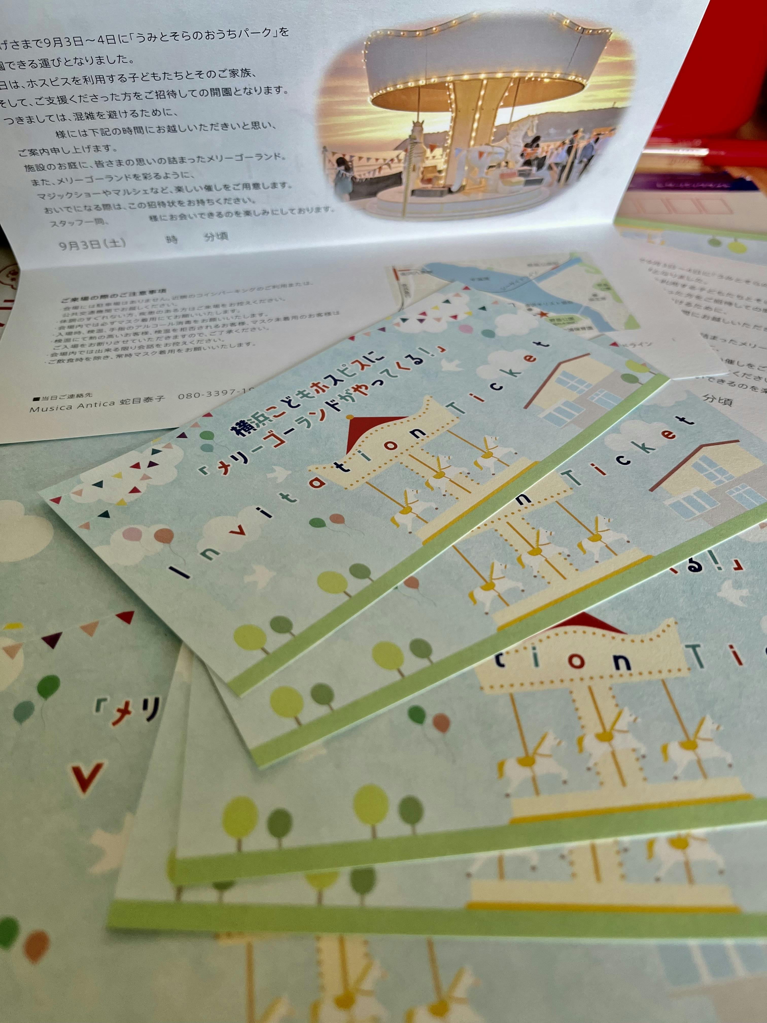 本日、「うみとそらのおうちパーク」のチケットと招待状が出来上がってきました!