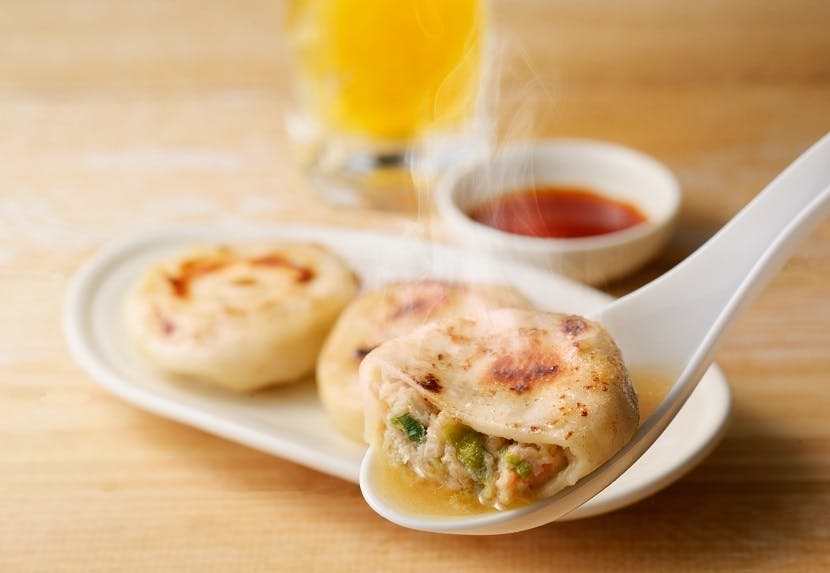 ぎょうざを丸くしたのは、このスープを中に閉じ込めるために一番いい形だからと判断したからです。