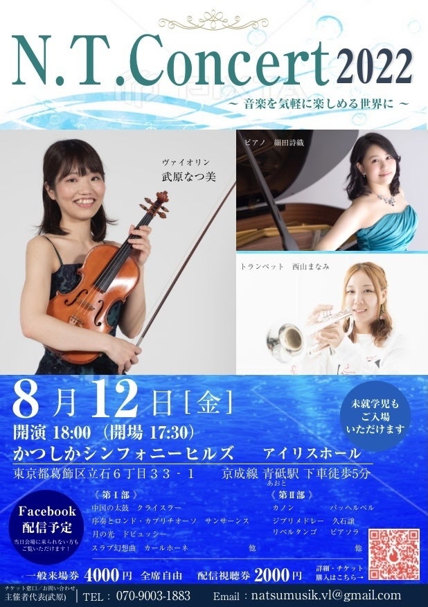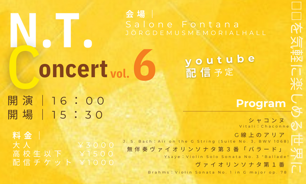今回が「N.T. Concert」として最後のコンサートです。ご足労おかけしますが、ぜひホールコンサートに足を運んでいただけると嬉しいです!!