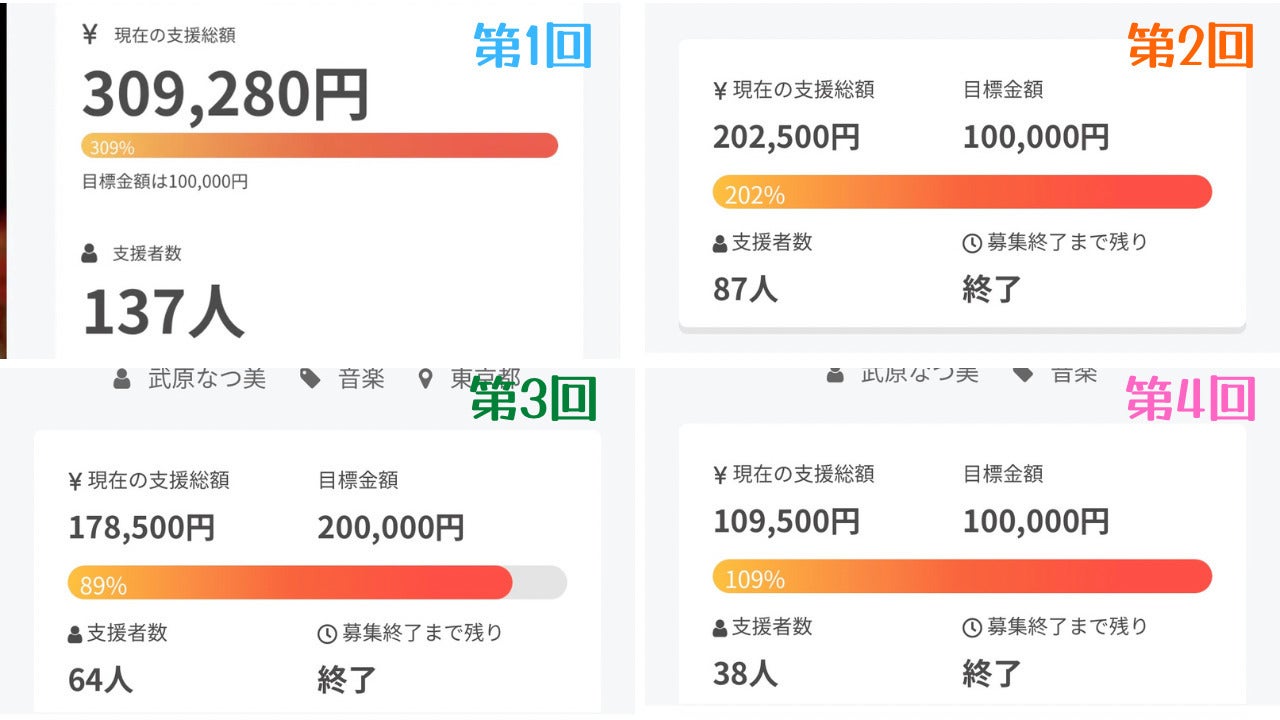 また、クラウドファンディングでは目に見える結果が出てしまうため、コンサートの回数を重ねるたびに減っていく支援者数にプレッシャーを感じておりました。