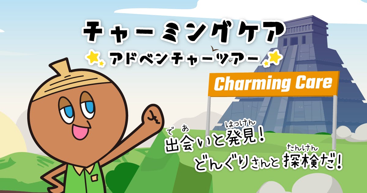 本クラウドファンディングにふんだんに使用している「どんぐりさん」がチャーミングケアの色々な取り組みについて探検しながら教えてくれる構成になっています。