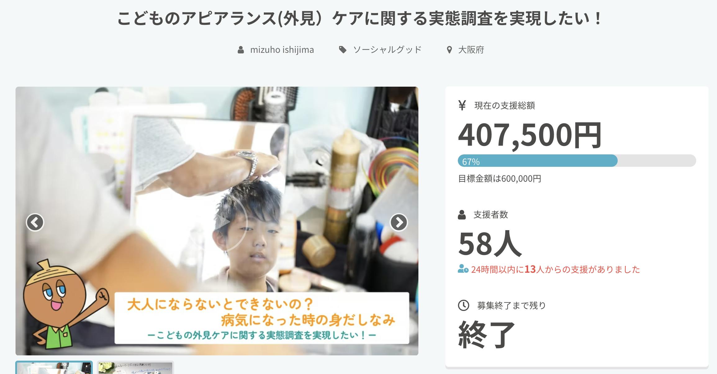 目標額には届きませんでしたが、58人の方に応援いただき40万円越えの支援金となりました。