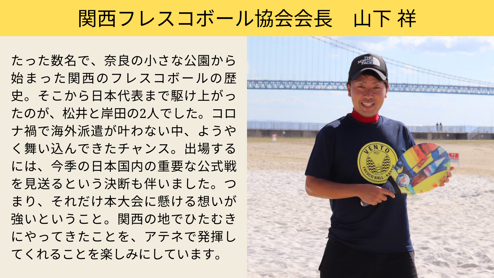 松井より少し後からフレスコボールを始めた岸田が日本・ブラジルで活躍する中、松井はどうしてもどうしても日本代表になりたかった。そのための努力は忘れなかった。2021年岸田と松井はペアを組む。その頃、山下の力もあり関西の普及は急激に進む。地元関西(兵庫県 大蔵海岸)での大会も行われていた。