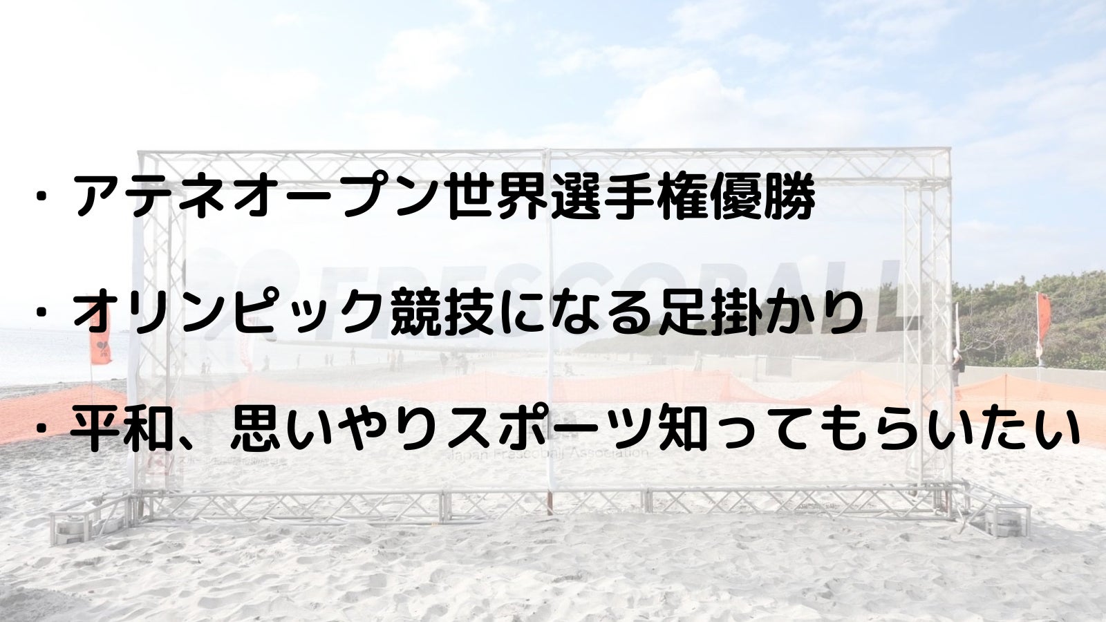 私たちがアテネオープンに出場する事で少しでオリンピック競技へ近づくこと、そして
