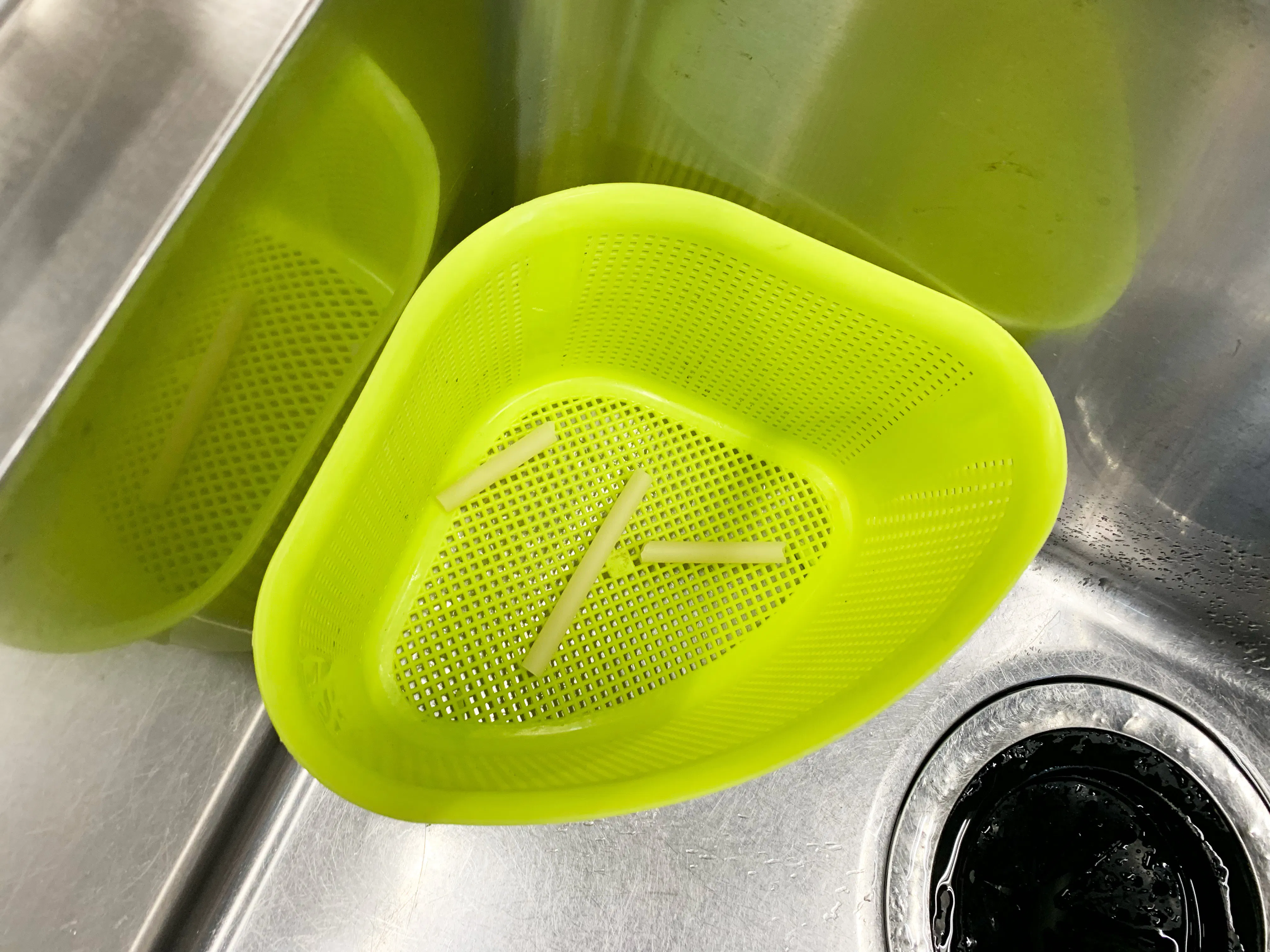水に浸かっている部分は柔らかくなるものの溶け出すことはなく、約2時間以上問題なく使用できます。やや湾曲しますが、ストローの形は保つので飲み物を飲むのに差し支えありません。