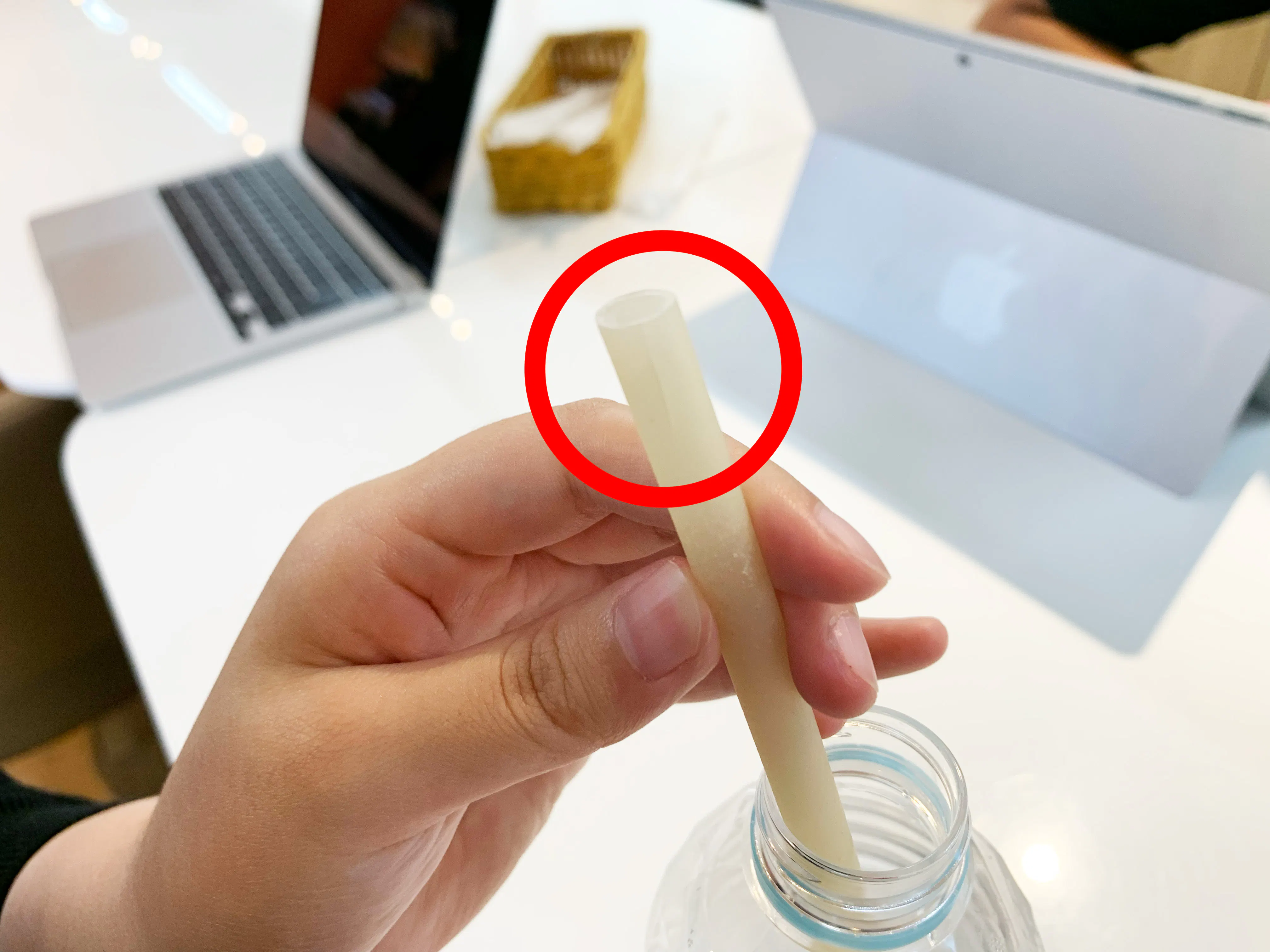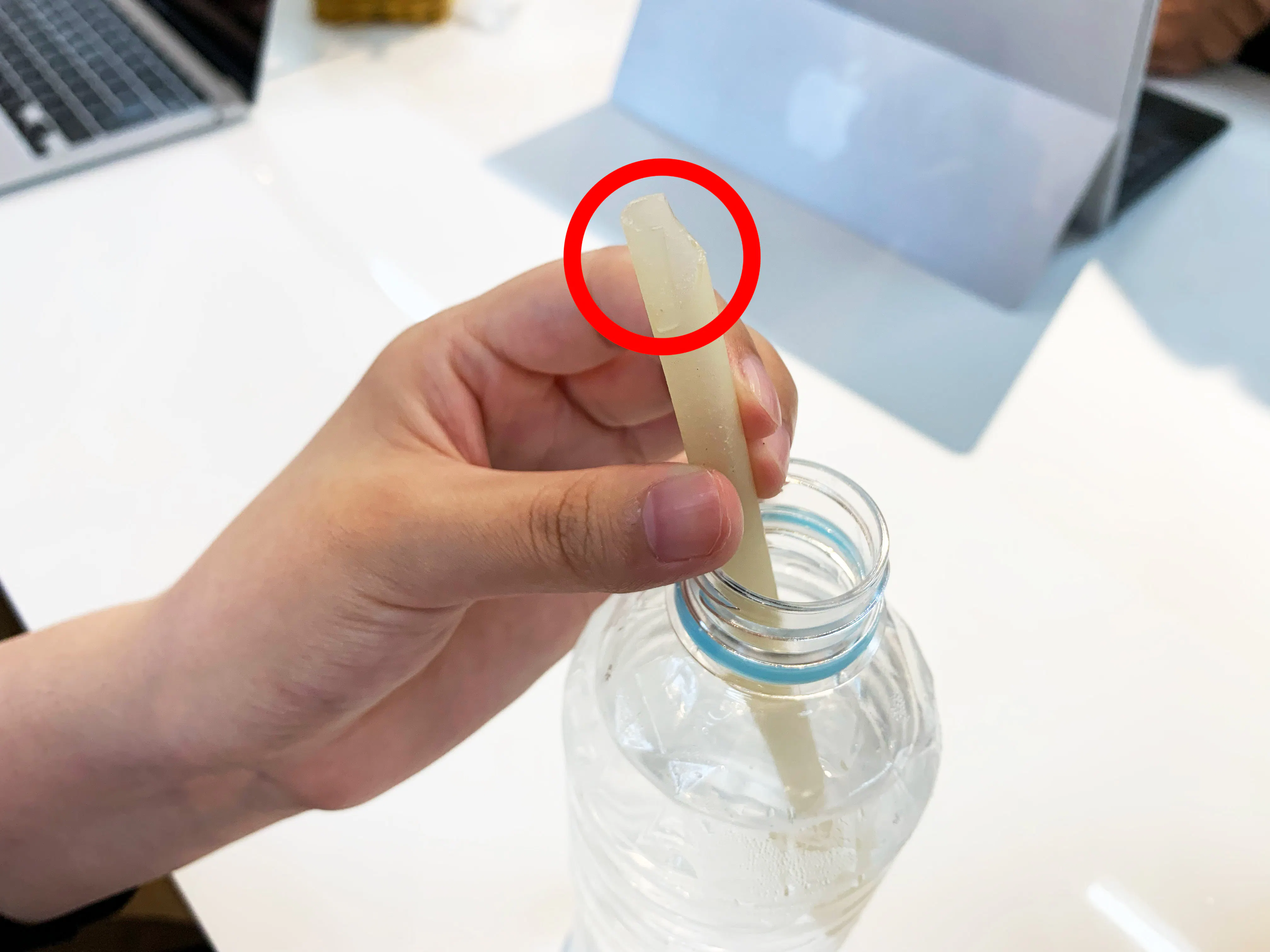 噛んだり、eco⁺MEストロー自体に圧迫がかかると、自ら「パン!」と破れます。