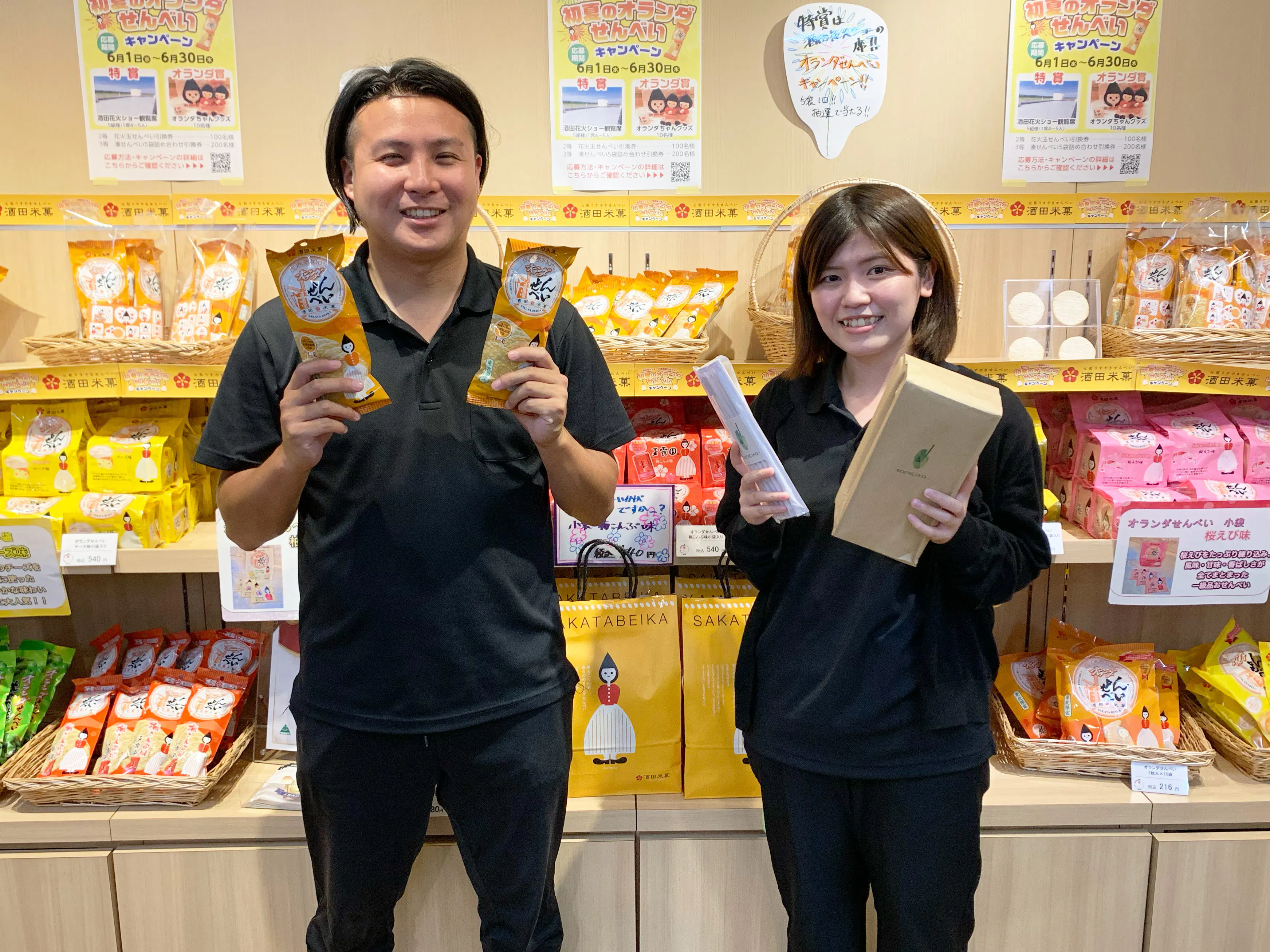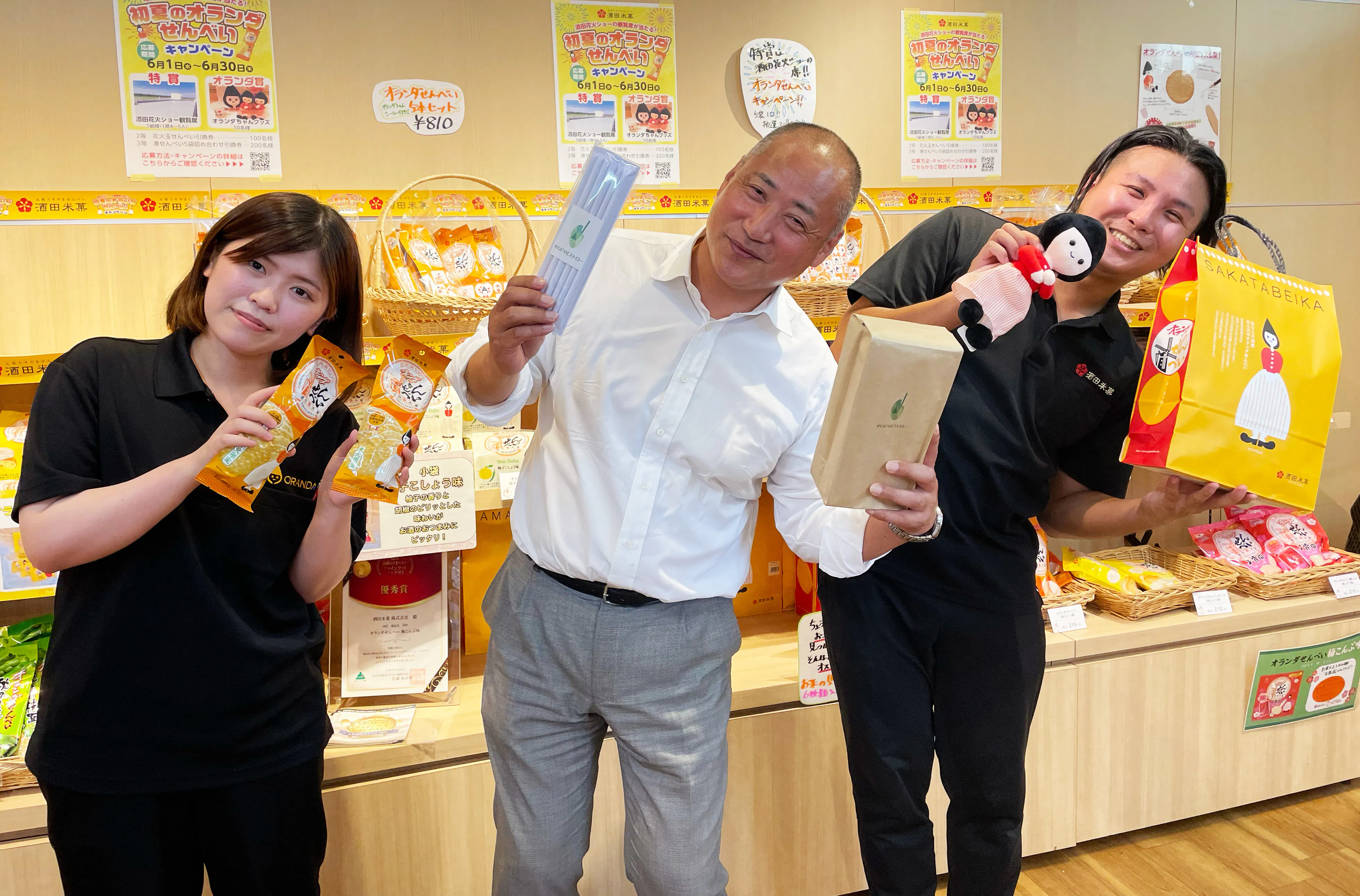 山形のソウルフード「オランダせんべい」を製造している『酒田米菓』の【 eco⁺MEストロー”斜め”ラボ】の高橋と今井です。