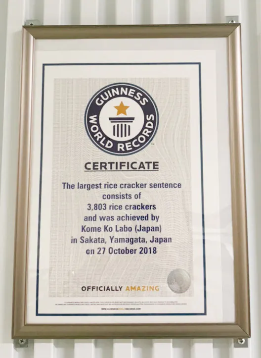 2018年11月22日に酒田米菓×酒田東高校の生徒さんと共同で世界一巨大なおせんべいアートに挑戦し、ギネス世界記録に認定されました!当日は一般の方も参加してくださり、3,803枚というものすごい数のおせんべいを使って制作しました。