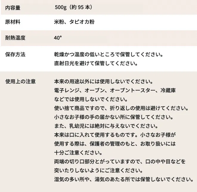 食べられる素材のみで作っているので、お子様が口にしてもすべて食べられる素材。家族みんなが安心して使えるストローです。