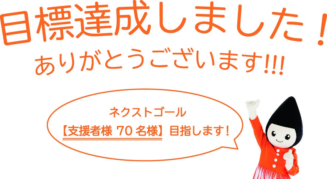 心より御礼申し上げます。ネクストゴールは弊社70周年とかけまして、【 支援者様70名様 】を目指して取り組んで参ります!!!