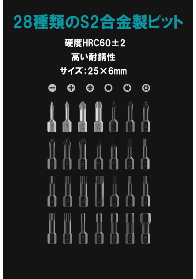 ビット外寸:25×φ6mm