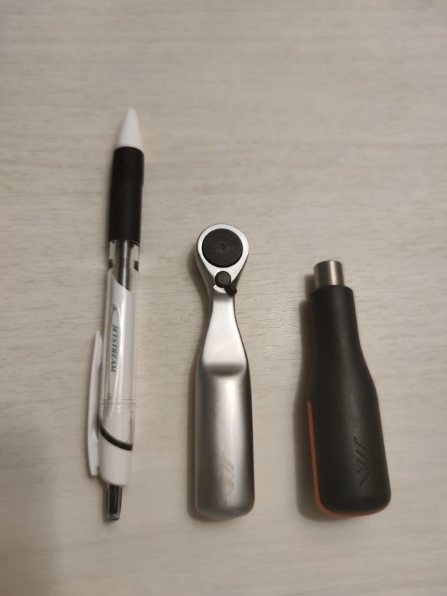ボールペンと比較しても超コンパクトなドライバーとラチェットです!
