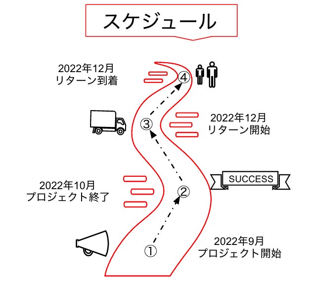 ※原則として、配送遅延に伴う支援のキャンセルはできませんが、リターン配送予定月から6ヵ月を超えた場合には、希望者に限りキャンセルにて対応させていただきます。