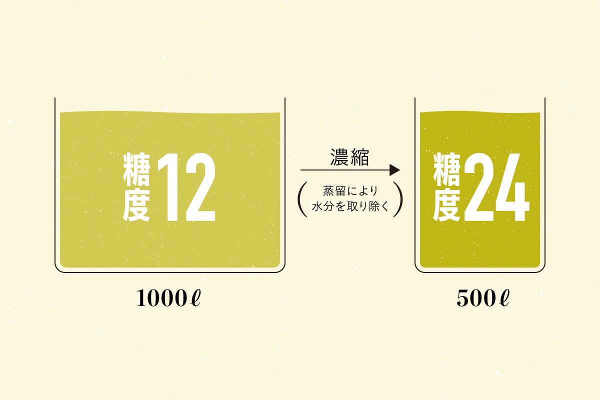 → 焼酎の製造過程である「真空蒸留」により、梨果汁から水分だけを取り除き、梨果汁の濃度を高めることに成功。