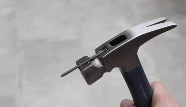 HOTO ネイルハンマーにはヘッド先端に釘を収められるスペースがあり、