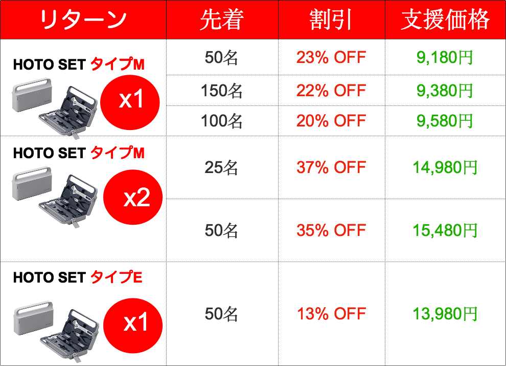 ●リターン価格:各リターン記載の通り *商品内容についてはリターン欄記載の通り