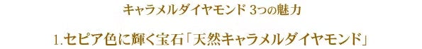 今回ジュエリーに仕立てた「天然キャラメルダイヤモンド」は、自然が生んだ美しいセピア色に輝く天然のダイヤモンドです。