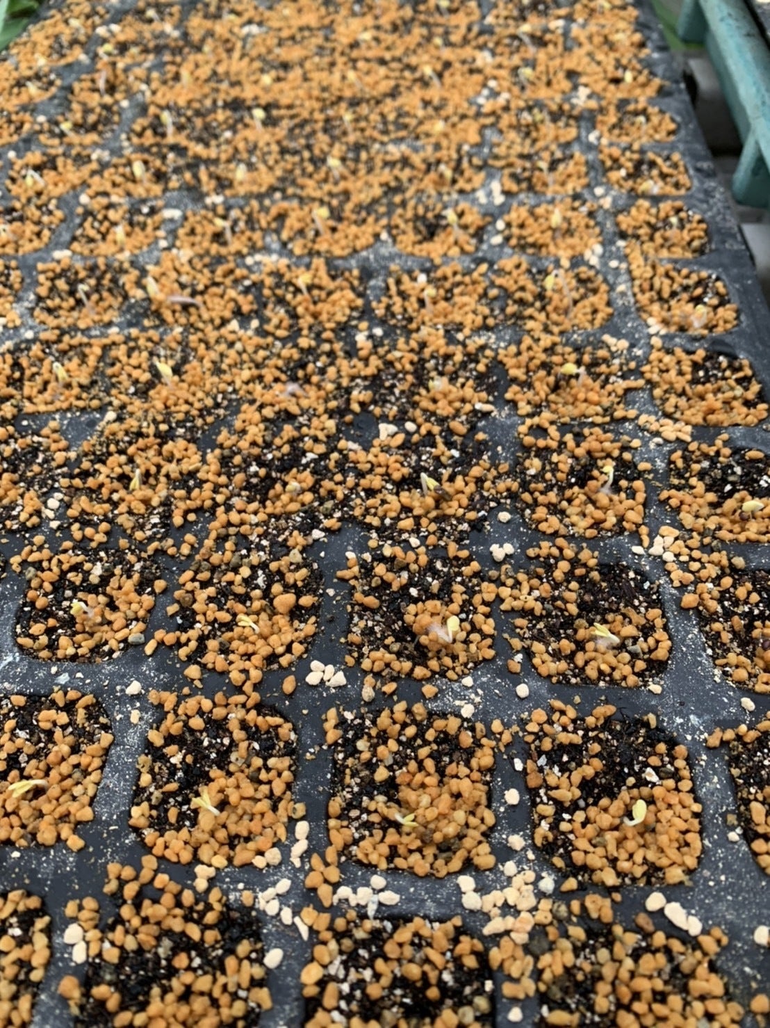7月25日に蒔いた秋どりキャベツの芽(撮影日7月27日)
