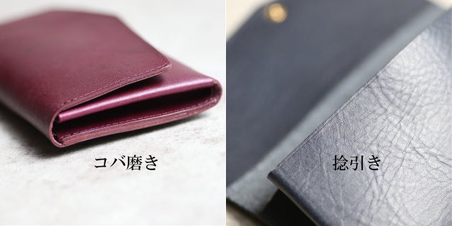 コバ磨きと呼ばれる革の裁断面を均等に整え磨き上げる処理や、捻引きと呼ばれる革の端に専用の道具で線を入れる処理は、製品の耐久性を向上させると同時に見た目にも引き締まります。