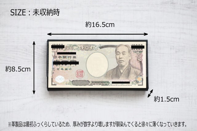 ①長財布の「史上最小サイズ」を目指す!16.5cm×8.5cmの極限サイズ